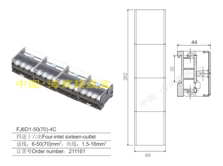 英文名稱:combined terminal blocks(Four-inlet sixteen-outlet)