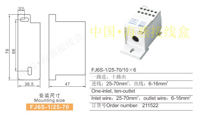 FJ6S-1/25-70/10×6多用途接線端子(一進多出)