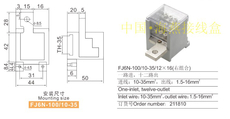 產(chǎn)品分類(lèi):FJ6N-100/10-35系列零線端子250