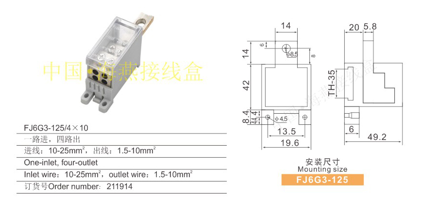 FJ6G3-125/4×10開關(guān)端子(出線10mm)