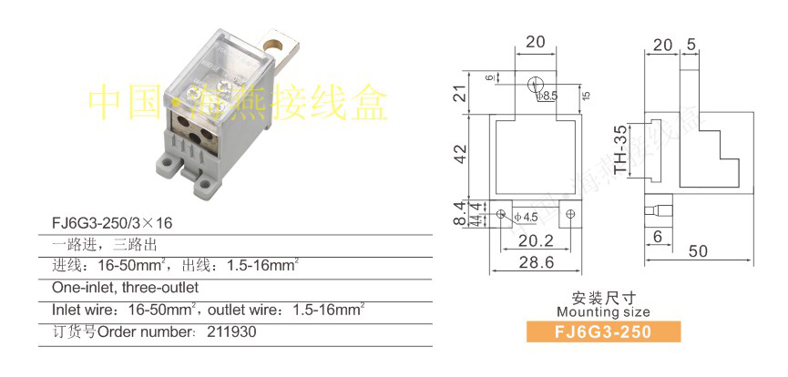 FJ6G3-250/3×16開關(guān)端子