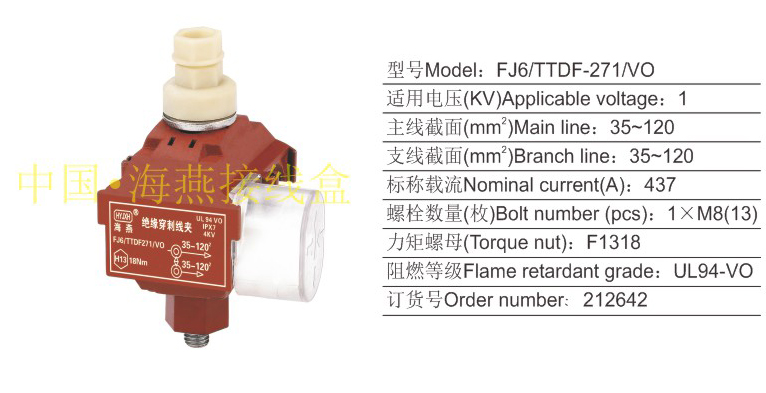 FJ6/TTDF-271/VO防火絕緣穿刺線夾(1KV)